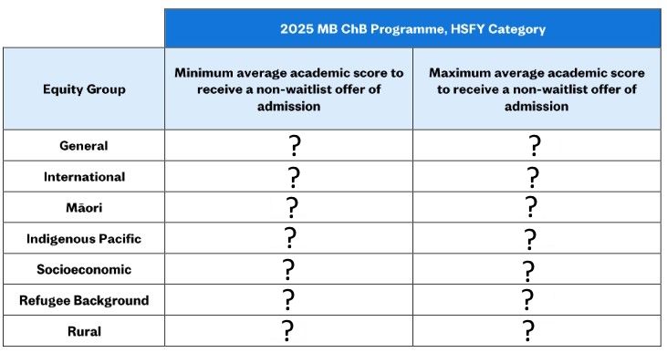 Table 3. Official Information Act request response showing minimum grades to get into Med via HSFY in 2025. Original document can be found here