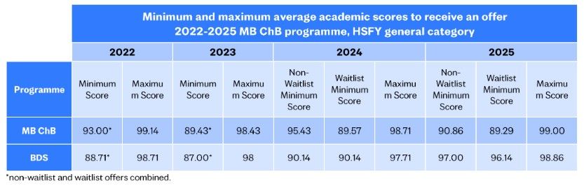 at least a ~90% grade average to get into medicine or dentistry through HSFY General category.